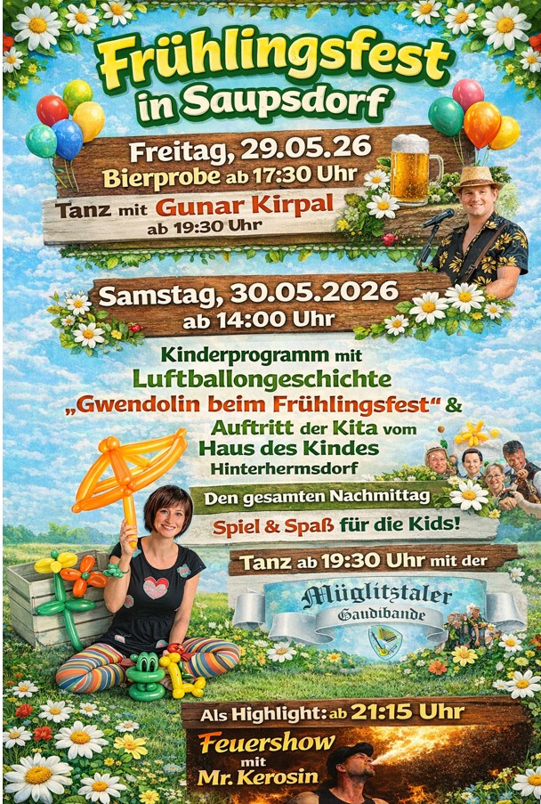 29.05. - 30.05.2026 Saupsdorfer Frühlingsfest / 25. Jahre Saupsdorfer Freizeitverein |